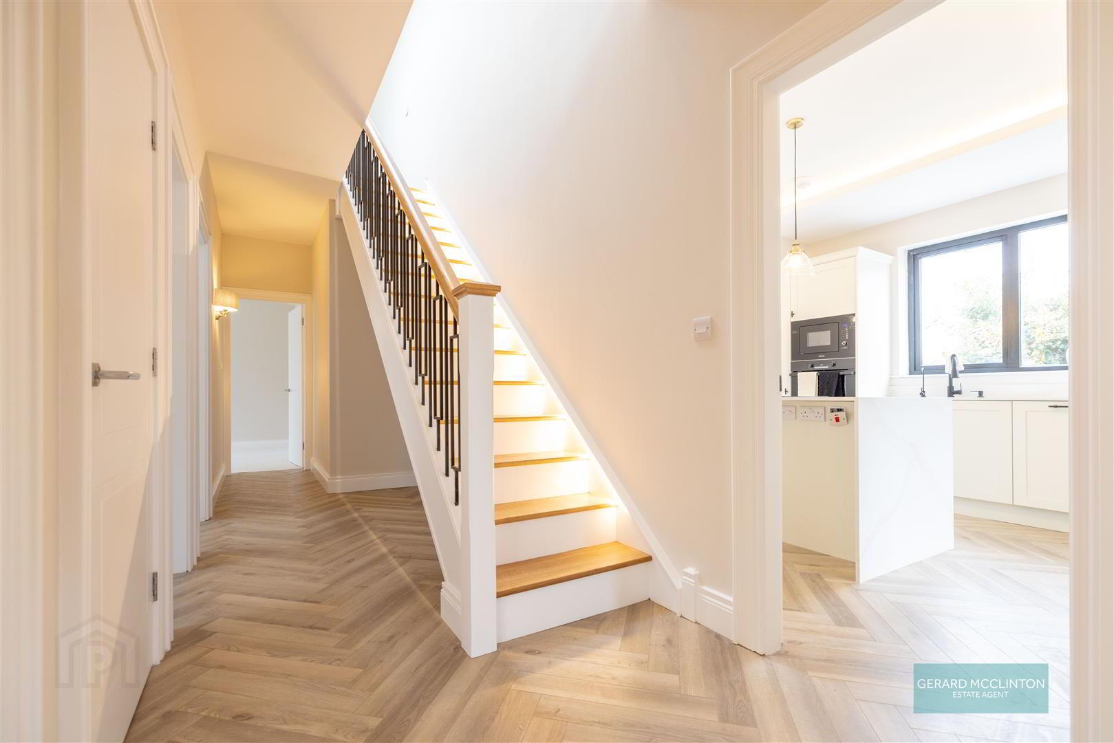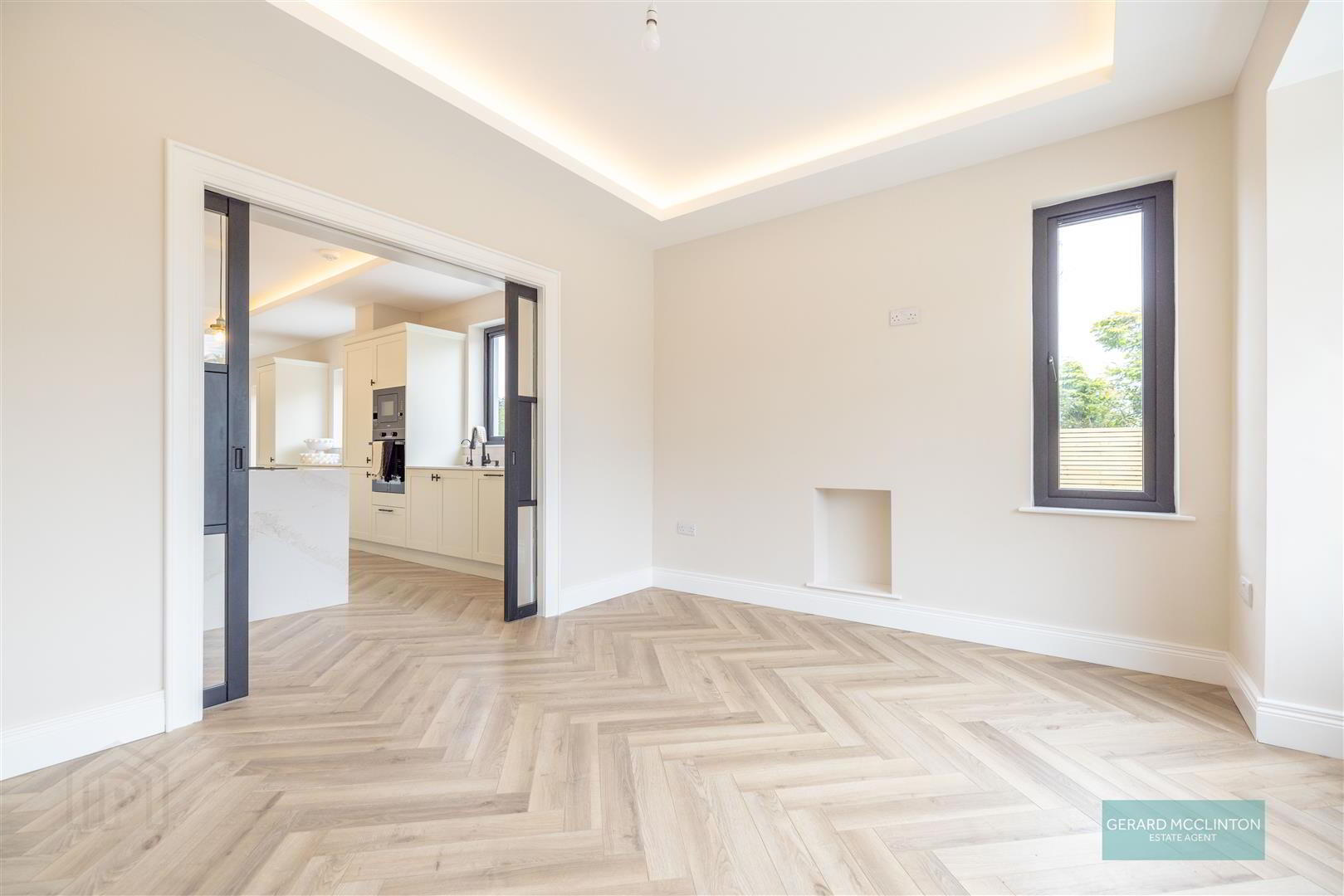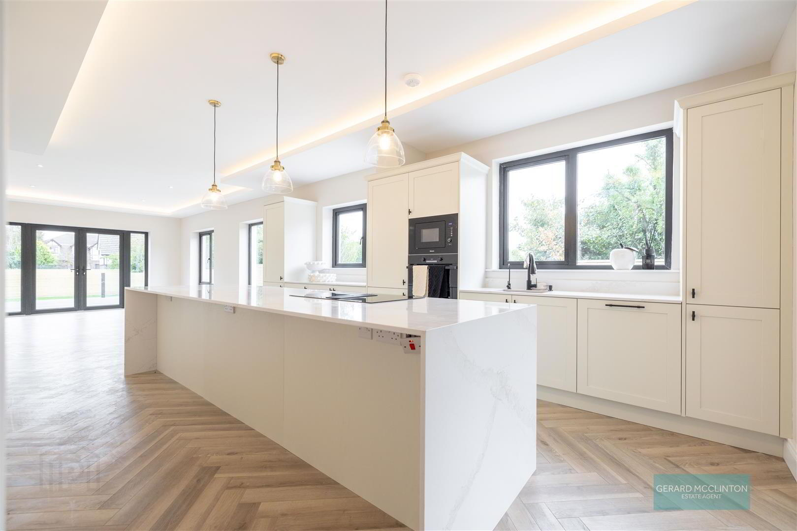Looks Can Be Deceiving… From entrance on the private laneway, 1 Neills Lane, Greenisland presents as a charming, modernised bungalow, yet, this architecturally refined, newly constructed 3000sqft residence unfolds into a luxurious family home set on approximately 0.3 acres of meticulously landscaped grounds.