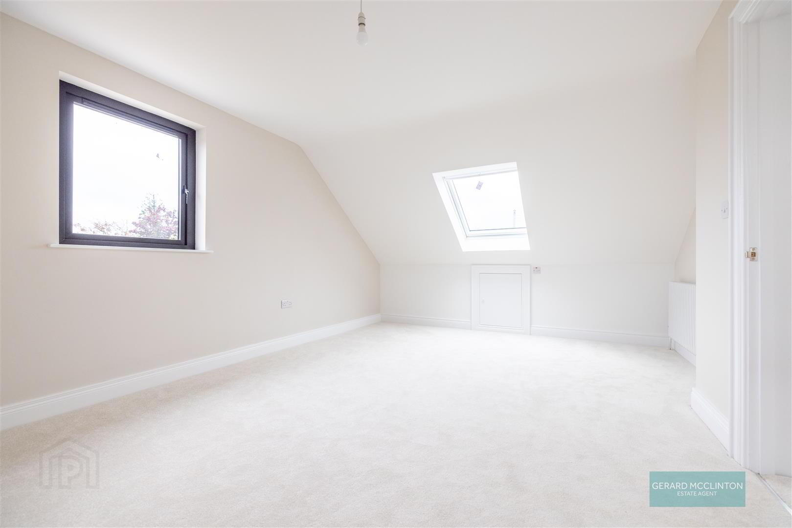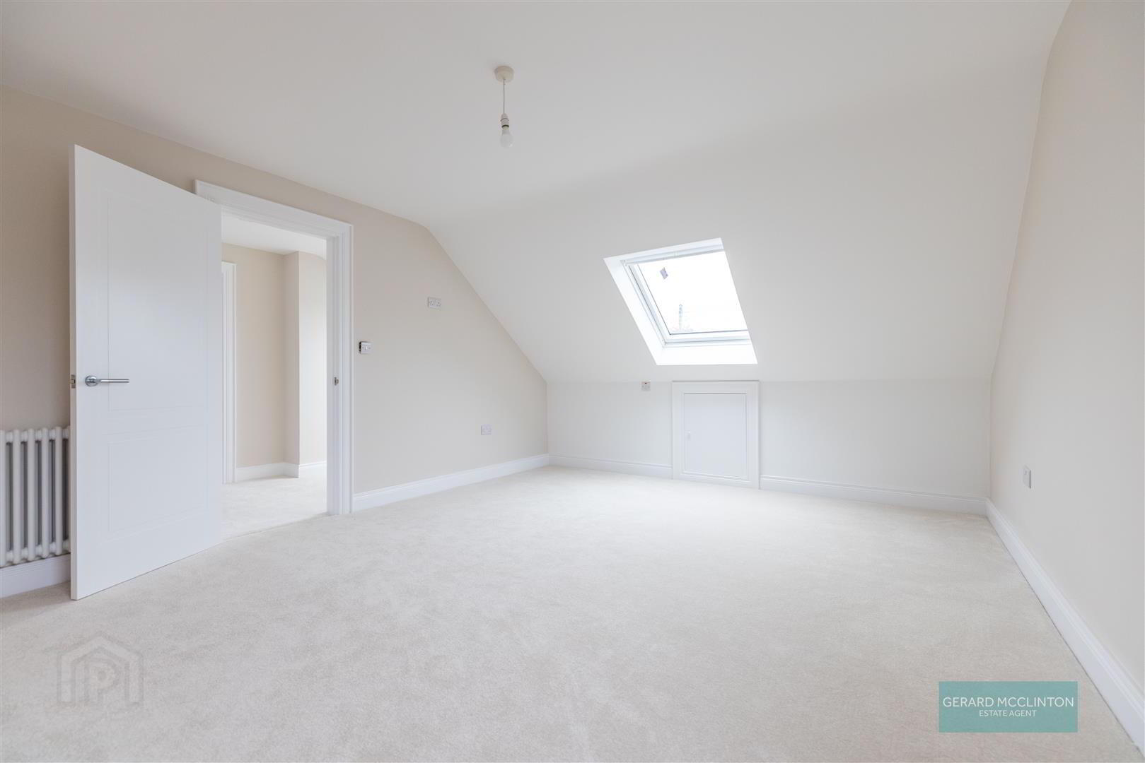Double glazed window to side and front with views over Belfast Lough, luxurious deep pile carpet, antique style radiator, storage into eaves