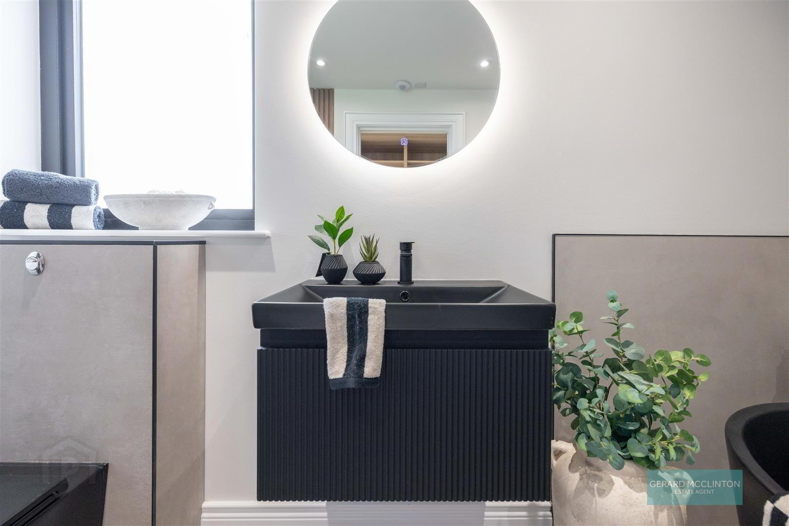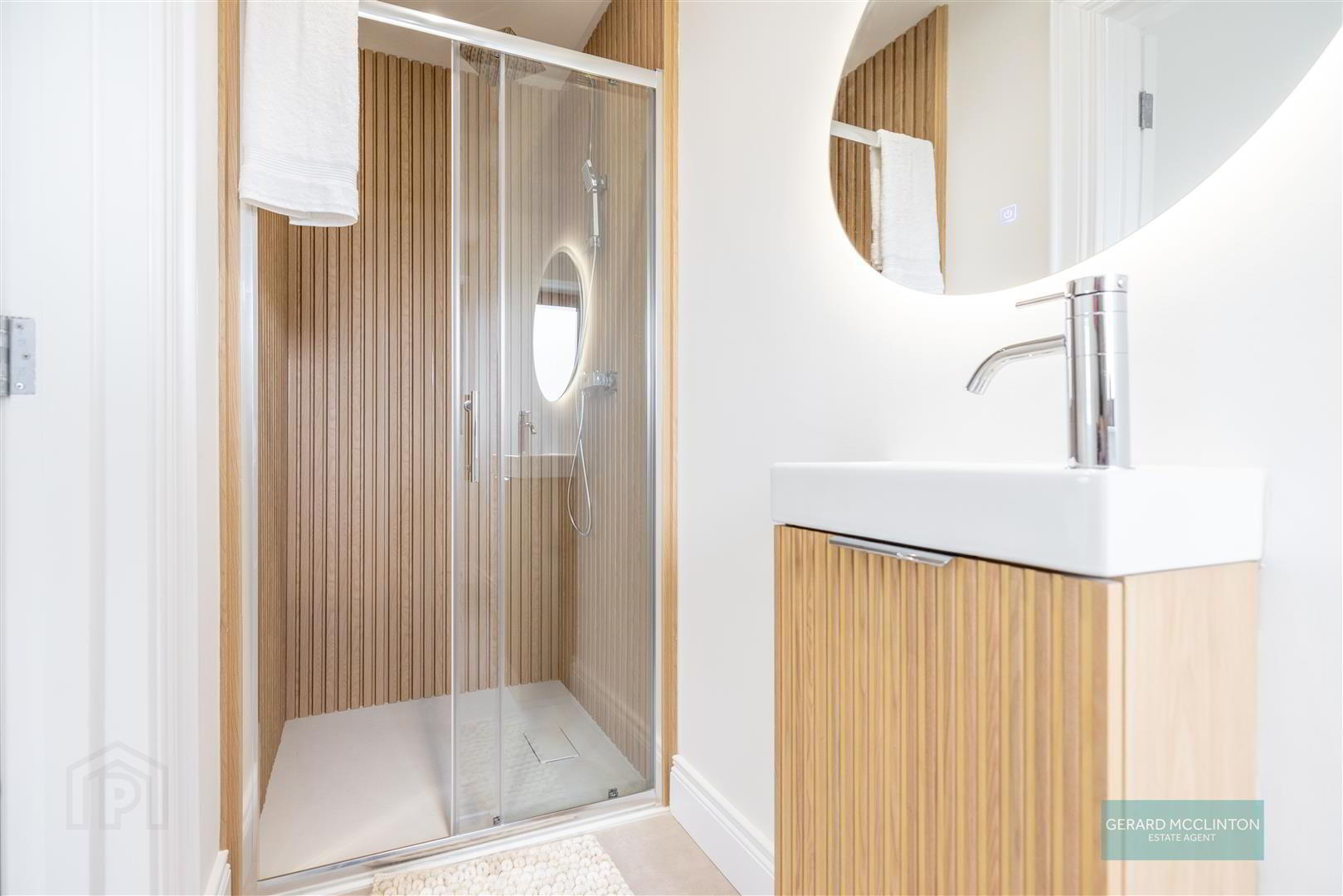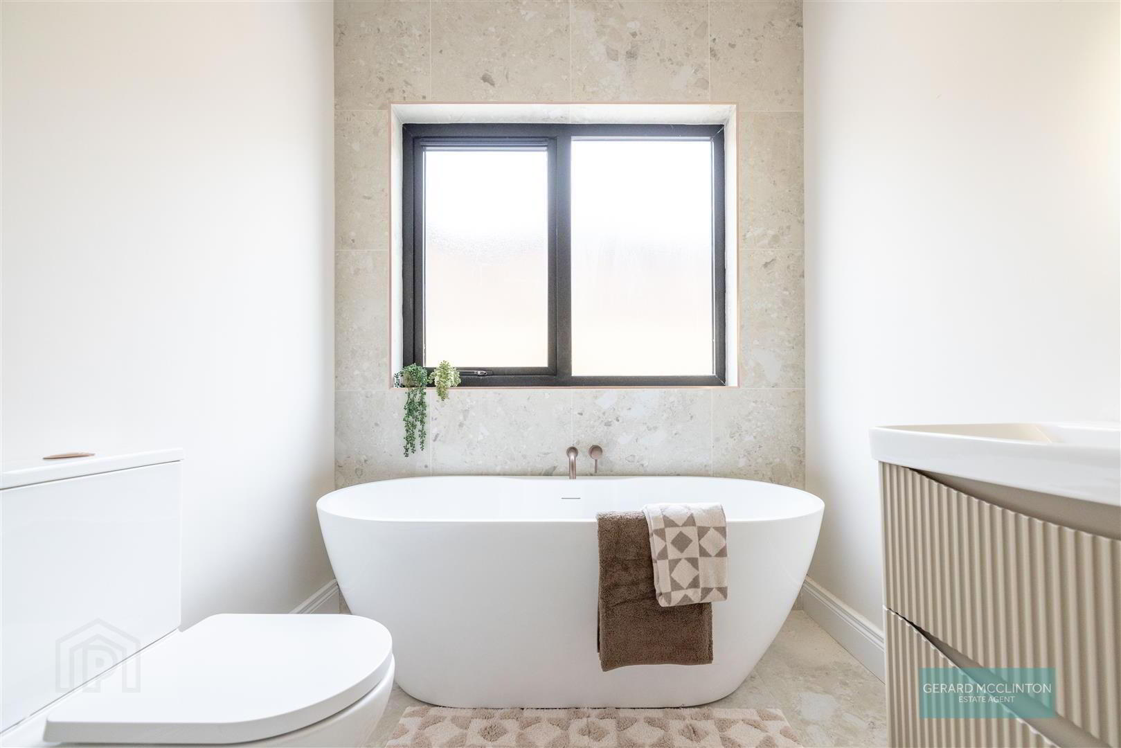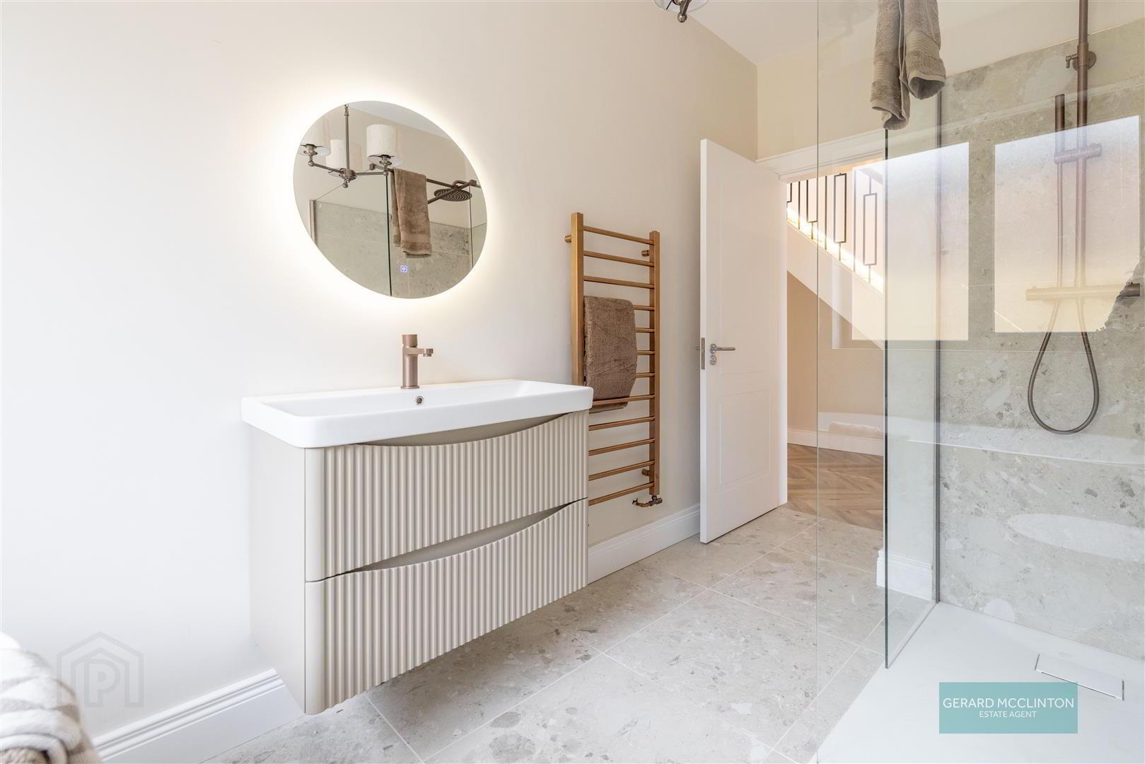 The primary suite has it all, space, light views and convenience, through the large double glazed window to the rear you have views over the rear garden, to the side, views over Belfast Lough. The room is fitted with luxurious deep pile carpet, antique style radiator and has is own walk in dressing room and en suite.