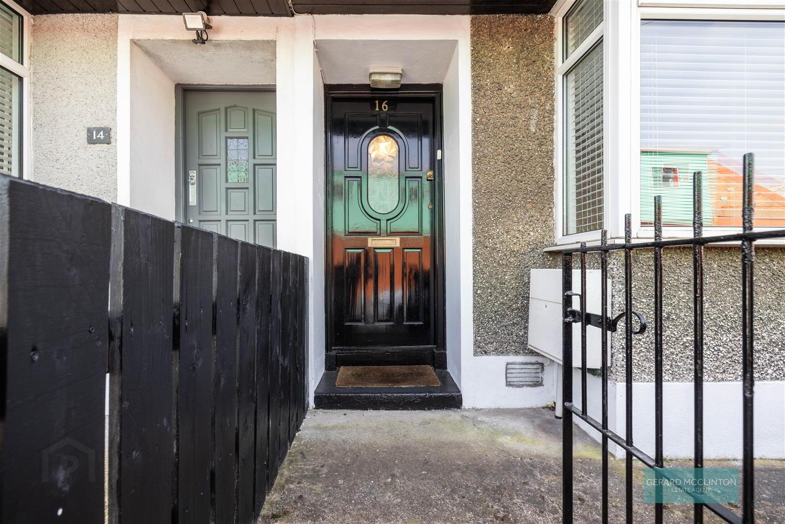 gated and walled forecourt, enclosed rear yard, storage with plumbing for washing machine