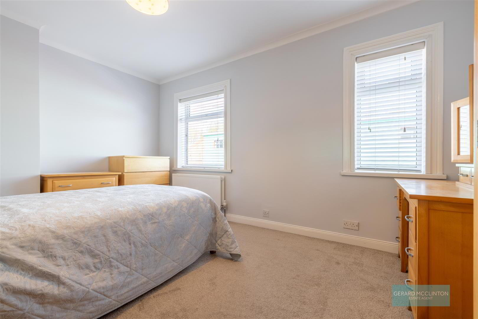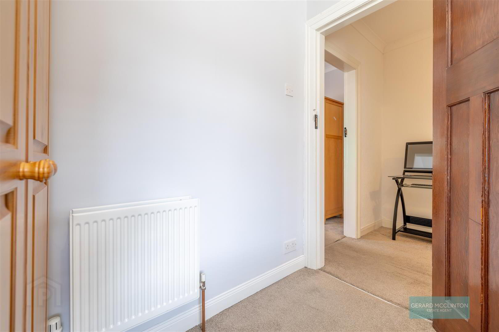 2 x double glazed windows to front, radiator, carpet, redecorated, feature original door