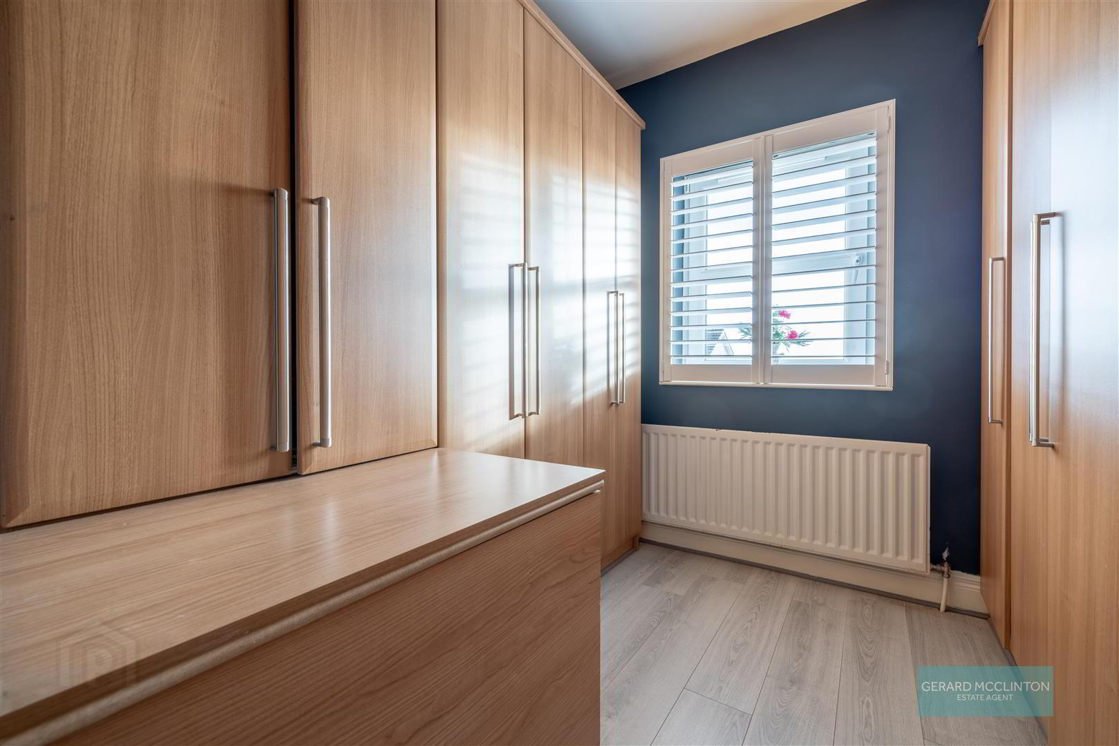 - 2 x double glazed window, laminate wooden flooring, radiator, built in bedroom furniture