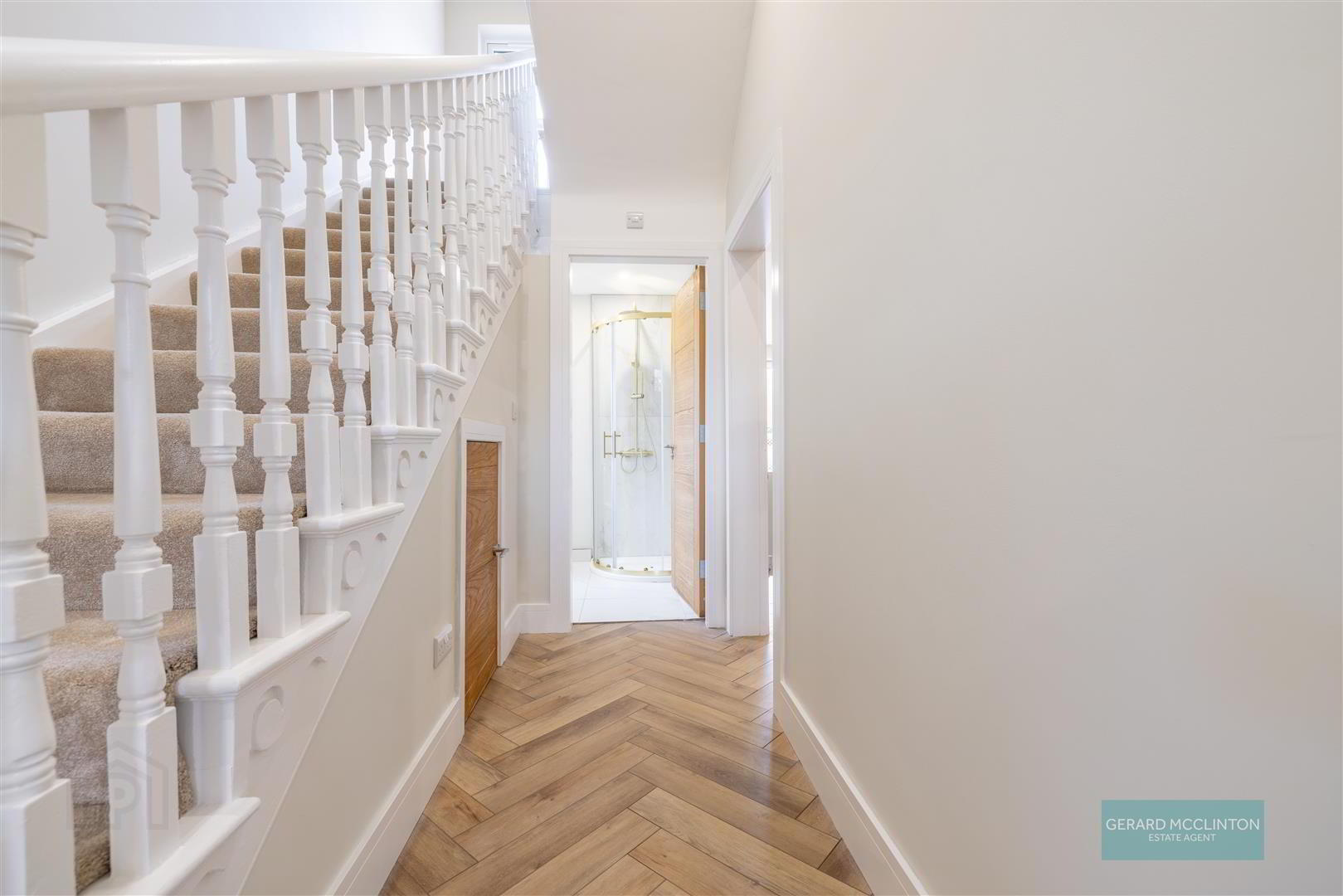 - Original entrance door, newly laid luxury herringbone LVT flooring with under floor insulation, new radiator, cupboard Housing new electric fuse board, original staircase painted in classic white with new deep pile carpet, recessed spotlights, storage under stairs