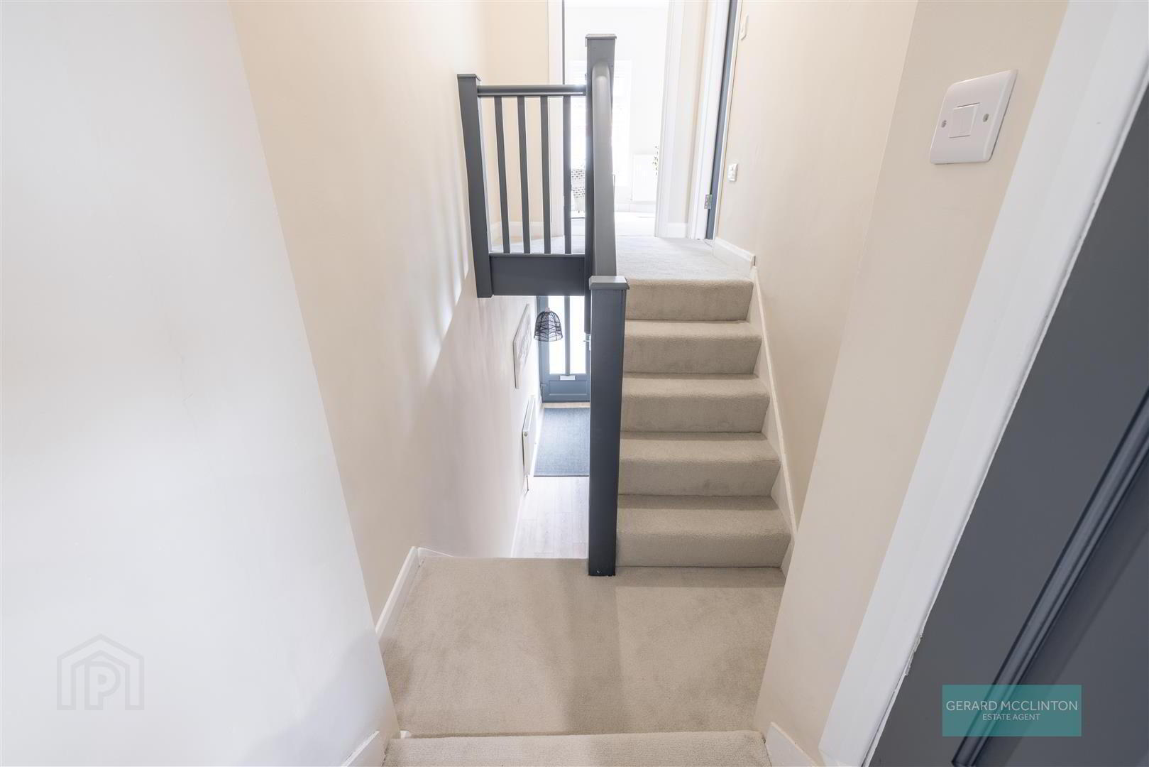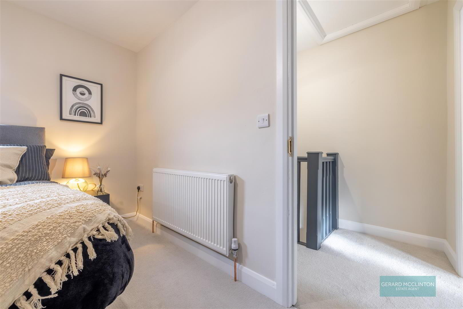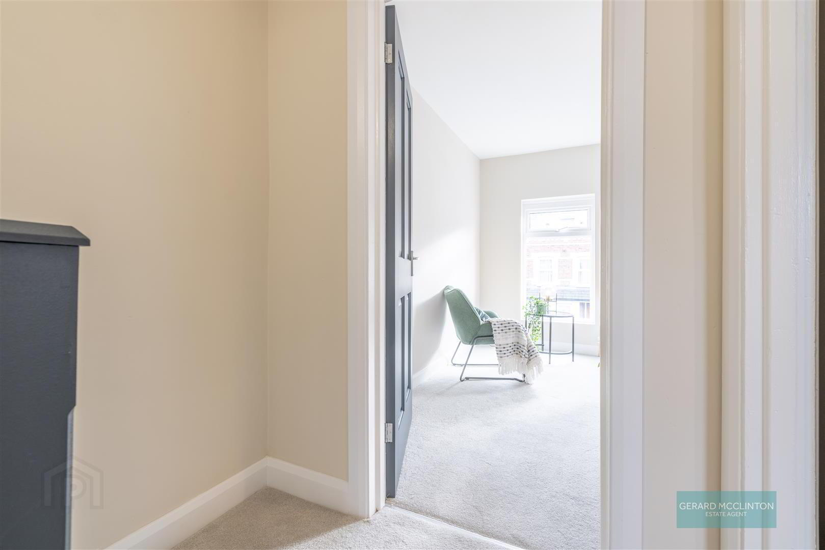 Newly laid carpet, access to roofspace, storage cupboard housing new gas central heating boiler, new hardwired smoke detector
