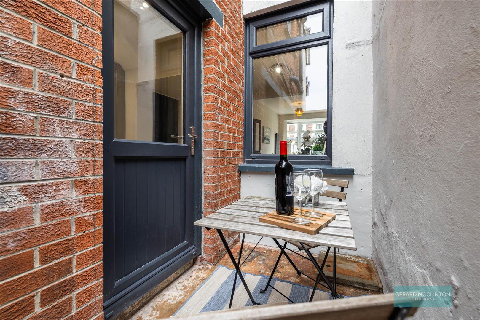 Walled forecourt and enclosed rear yard with pedestrian gate and external watertap