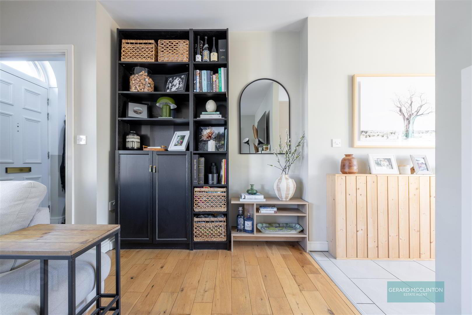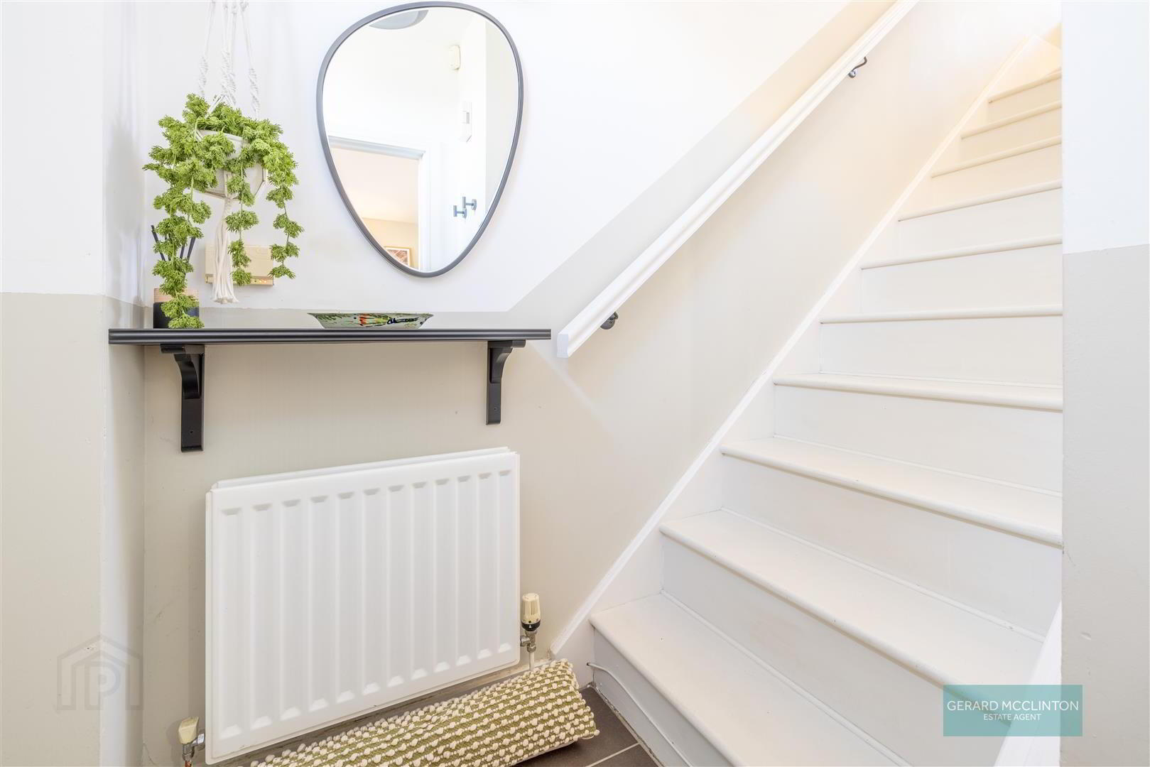 - UPVC double glazed door to front, tiled floor, radiator, white painted staircase to 1st floor with two tone painted walls, glazed door to living room