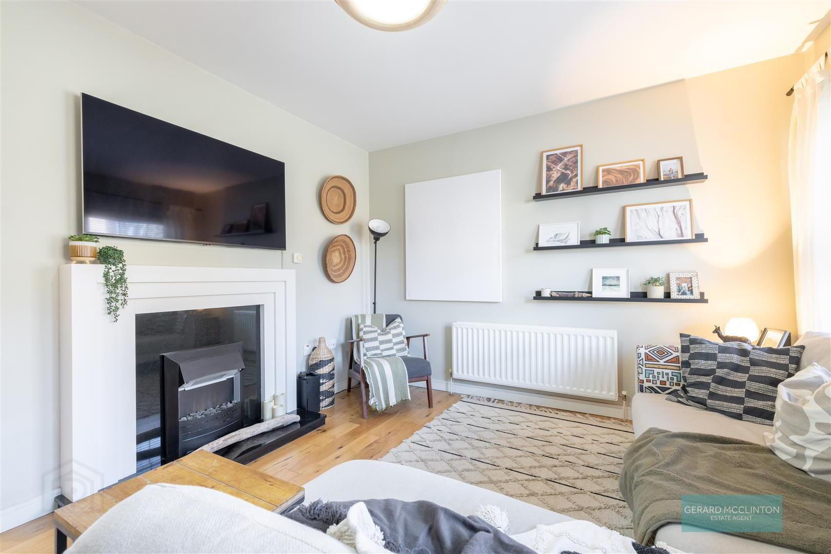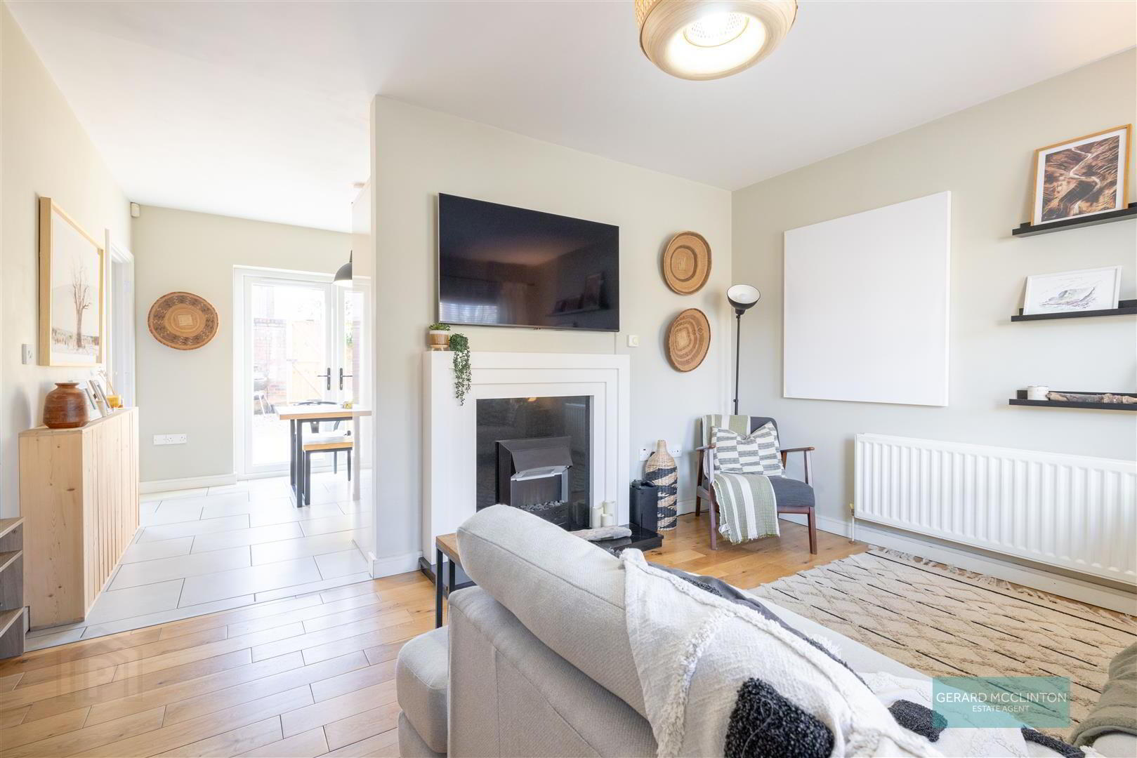 From the moment you step inside, the property feels bright, welcoming and thoughtfully finished. The spacious lounge is the perfect place to relax, featuring a decorative wooden fireplace alongside a solid wood floor that adds warmth and character.