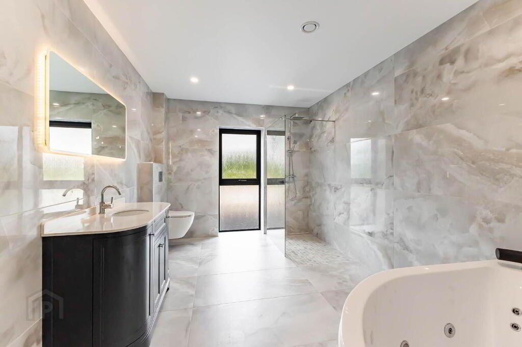 A striking first impression — this beautifully designed entrance hall immediately conveys the home’s exceptional quality and attention to detail. The space is finished with large-format porcelain tiles, creating a seamless flow and sense of understated luxury.