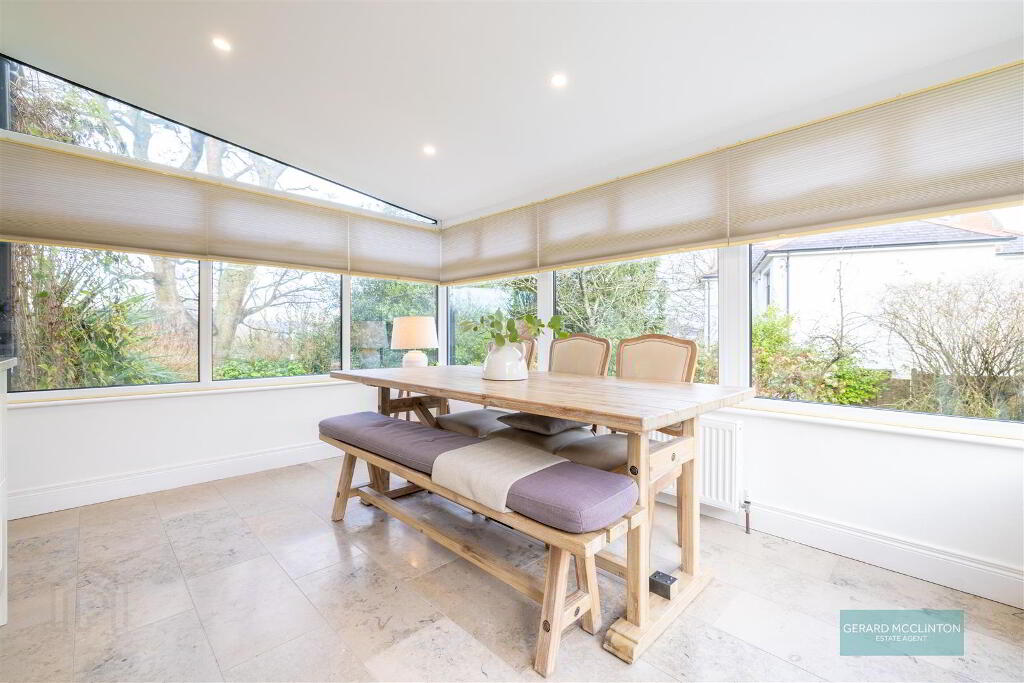 • Extensively glazed dining area with uninterrupted views across the landscaped garden