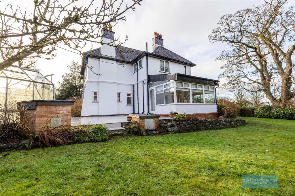 Outside, the grounds are exceptional, featuring mature gardens, pear and apple trees, greenhouse, double garage and extensive driveway parking.