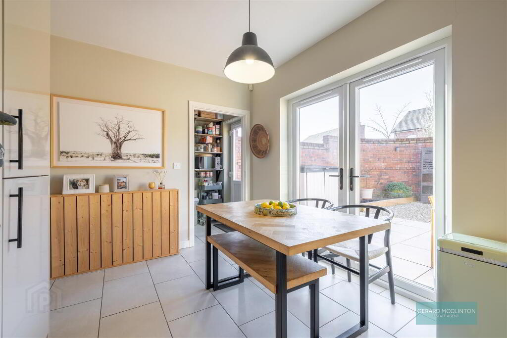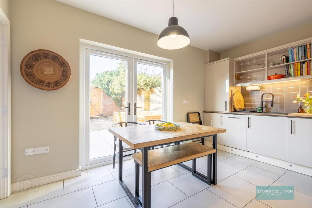 To the rear, the home really comes into its own with a contemporary fitted kitchen and dining area, complete with a range of integrated appliances and plenty of storage. Double doors open straight out to the rear garden, creating a great space for everyday living or entertaining friends and family.
