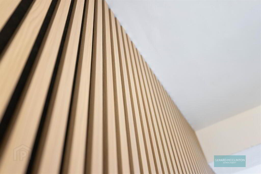 UPVC double glazed bay window to front, new Chevron style laminate wooden floor, newly installed fluted wood feature wall, new radiator, double doors onto kitchen