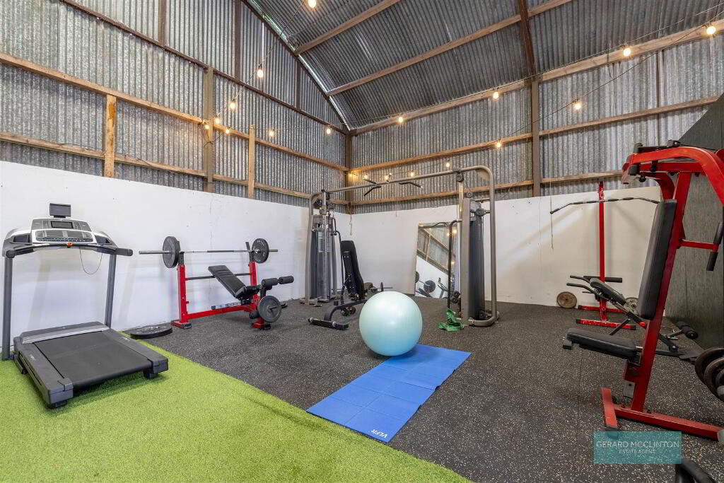 Exceptional storage space with sliding doors and pedestrian access. Light, WiFi extenders and power installed, along with the further installation of a smart car charging point. Previously used as a wedding venue, it is currently utilised as superb storage and home gym.