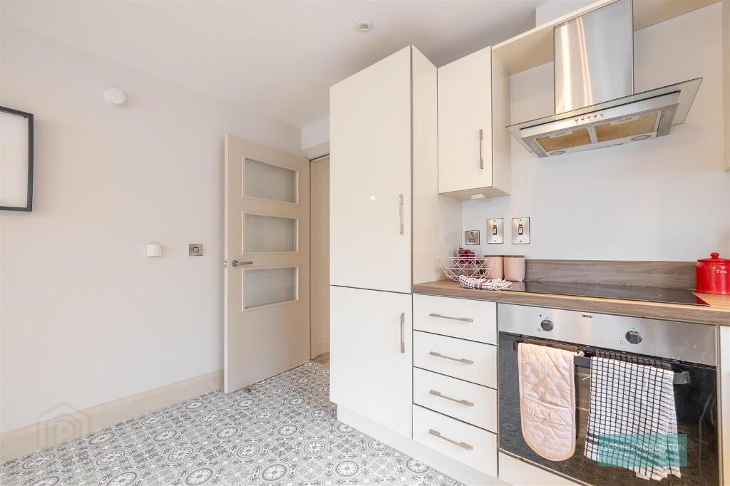 Kitchen area: Double glazed window to side, new tile effect vinyl flooring, modern range of high and low level gloss units with soft close drawers, integrated electric oven, gas 4 ring hob with extractor hood over, integrated fridge freezer and dishwasher, space and plumbed for washing machine, single drainer sink unit with mixer tap, wall mounted and enclosed gas central heating boiler